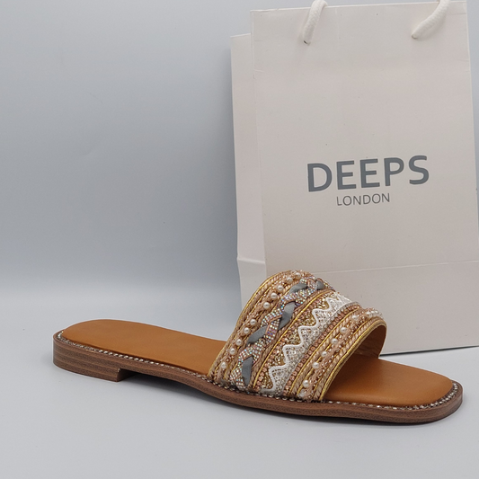 Open Toe Pearl Studded Slip-On Slider Sandals | Women's Casual Elegance London | DeepsLondon