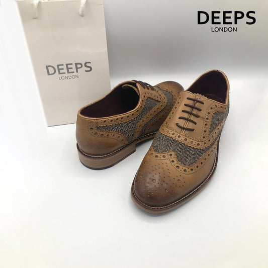 WATSON MENS LACE UP BROGUE SHOES TAN LEATHER TWEED