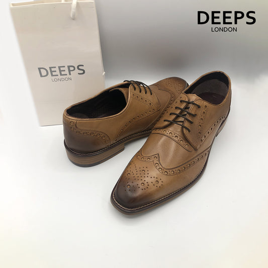 WATSON MENS LACE UP BROGUE SHOES TAN LEATHER