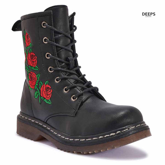WINX LACE-UP ANKLE BOOTS WITH FLORAL EMBROIDERY