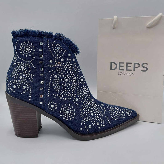 Glitter Block Heel Sandal with Diamante Front Straps | Women's Occasion Heels | DeepsLondon