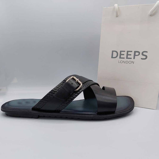Faux Leather Cut Out Strap Slip-On Sliders - Beige & Black | Women's Casual Sandals | DeepsLondon