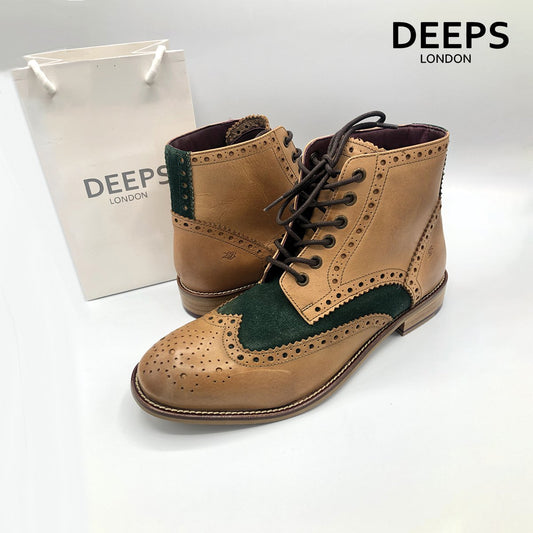 GATSBY BOOTS LONDON BROGUES TAN LEATHER GREEN SUEDE
