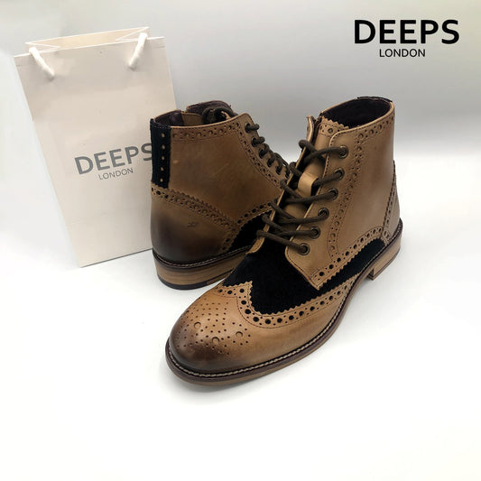 GATSBY BOOTS LONDON BROGUES TAN-NAVY SUEDE