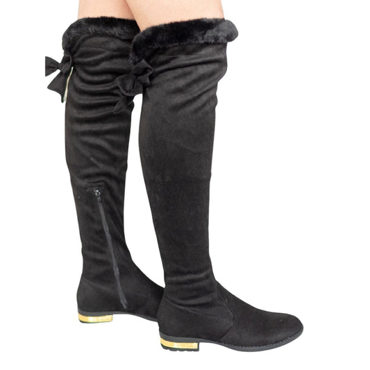 IVY WOMEN'S BLACK SUEDE OVER THE KNEE FUR BOOTS