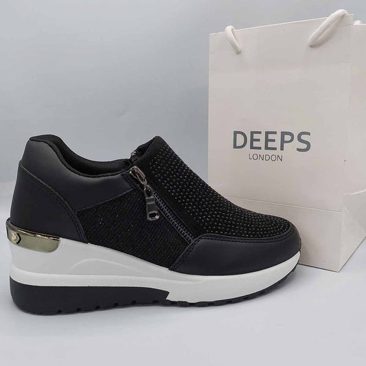 SENGA BLACK SLIP ON WEDGE FASHION TRAINERS