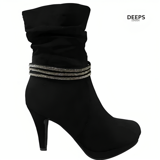 SEQUIN WOMEN’S SLOUCH MID HIGH CALF HEEL BOOTS