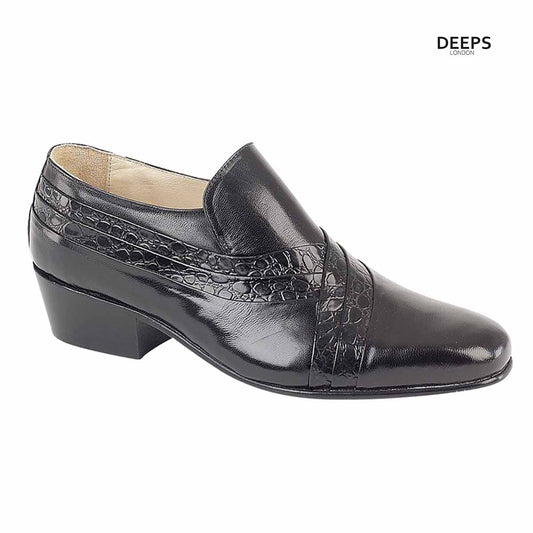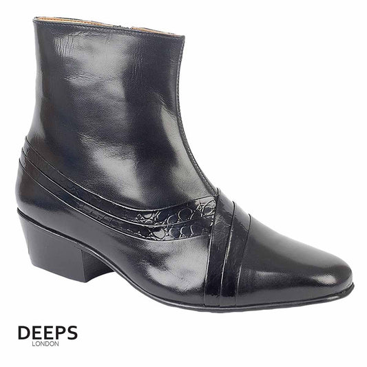 MEMPHIS - MEN'S CUBAN HEEL FORMAL CASUAL PARTY WEDDING LEATHER BOOTS WITH SIDE ZIP BLACK