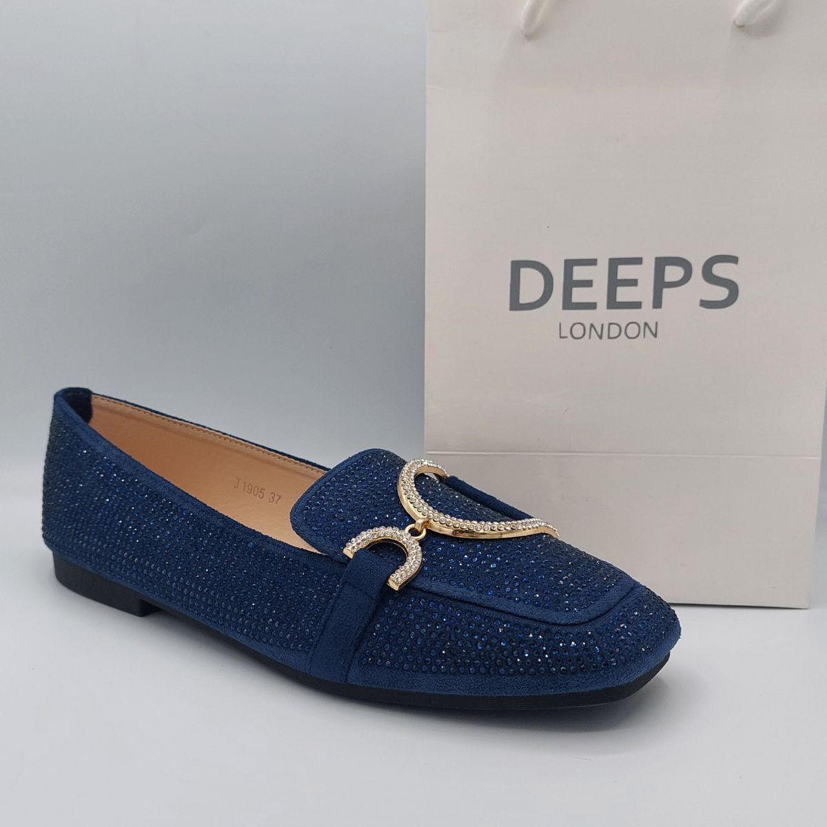 Diamante Glitter Loafers - Black, Beige & Navy | Women's Flats with Gold Detail | DeepsLondon