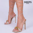 Women wearing Jen chunky chain tie leg heel in nude, showcasing the bold chain detail and elegant tie leg design, London style from DeepsLondon.