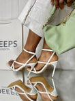 Step into contemporary style with our Lillian stiletto tube strap square toe front sandals. These striking women's heels feature a modern square toe and minimalist tube straps across the front, elevated by a sharp stiletto heel. Perfect for adding a touch of edgy sophistication to any London occasion. Available in classic black and crisp white.